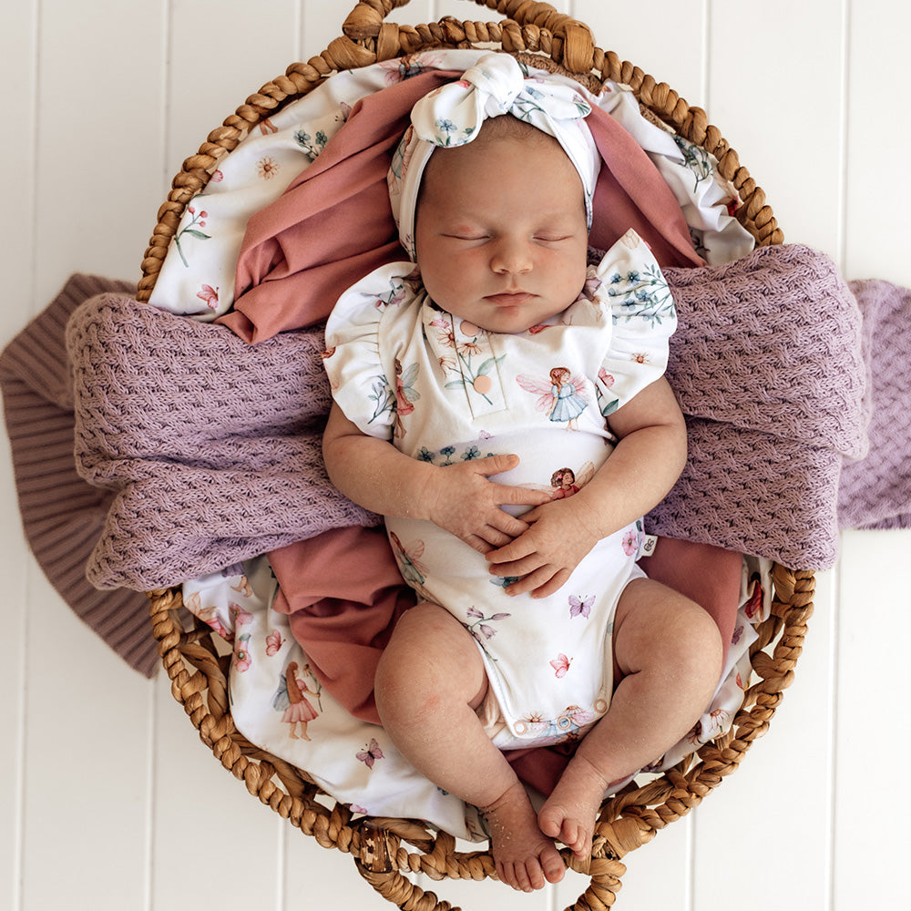 Snuggle Hunny organic bodysuits are made for babies and toddlers and our exclusive Fairy Garden print is beautiful and perfect for baby girls. This bodysuit is short-sleeved, perfect for warmer weather, and under layers.