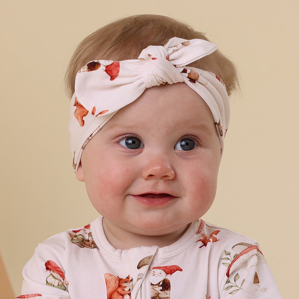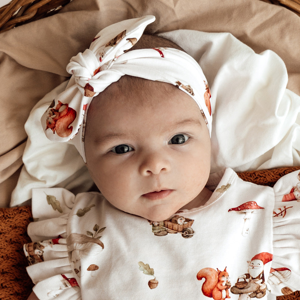 Our Snuggle Hunny organic cotton jersey topknot is soft and snuggly. This topknot features our Gnomes design and is made with Certified Organic cotton.
