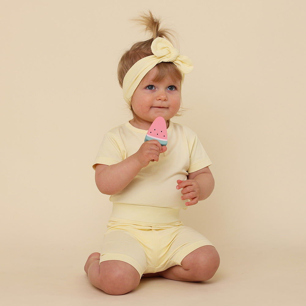 Snuggle Hunny organic Lemon Sorbet bike shorts are made for babies and toddlers. They are practical whilst being very stylish and match beautifully with our fitted bodysuits and T-Shirts.