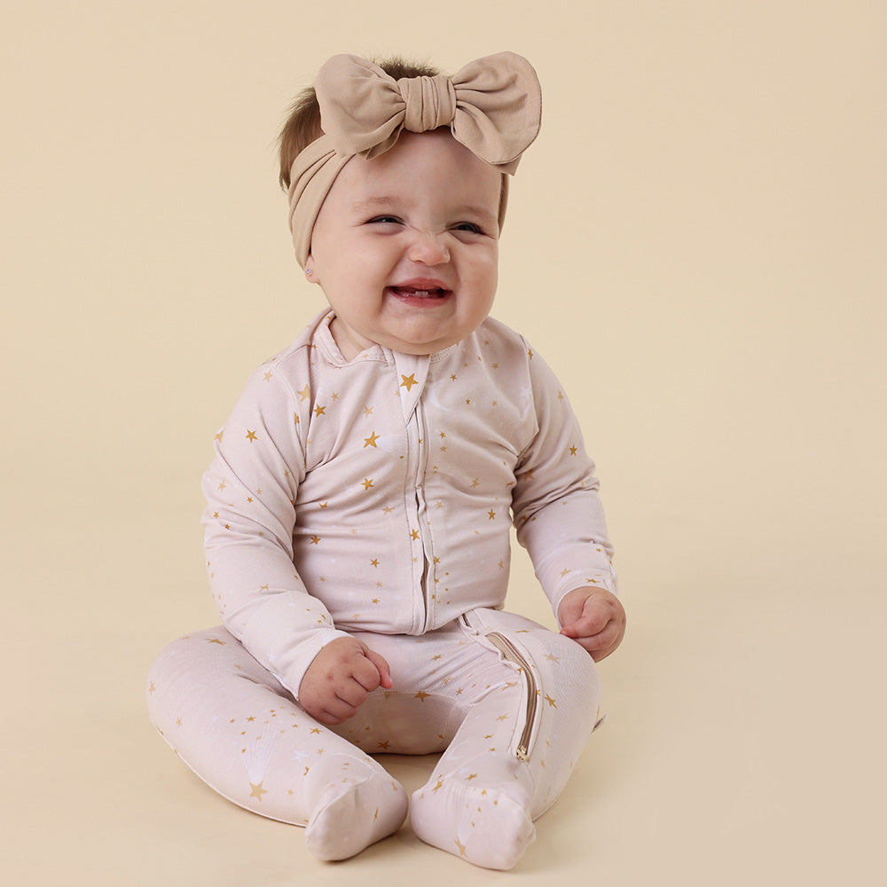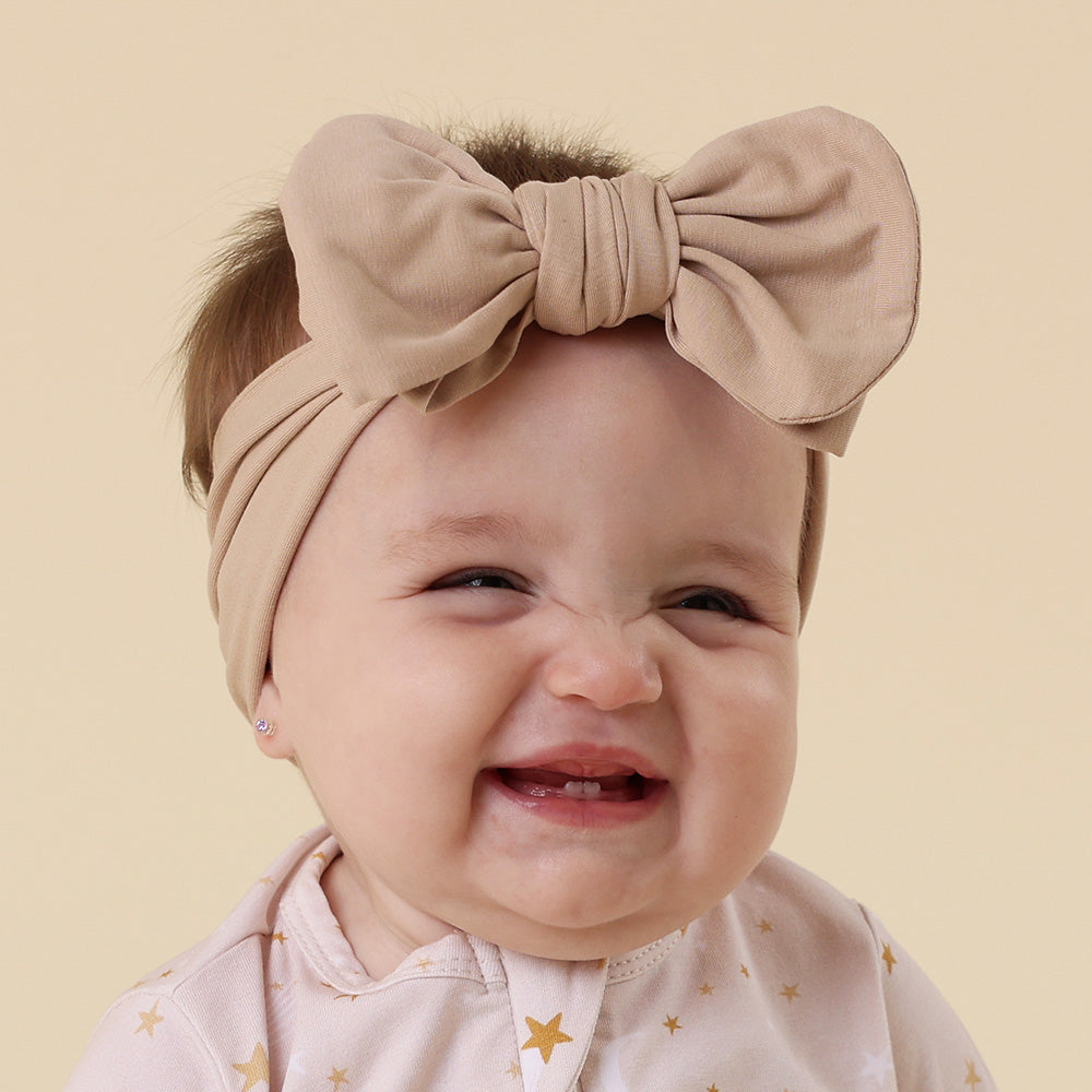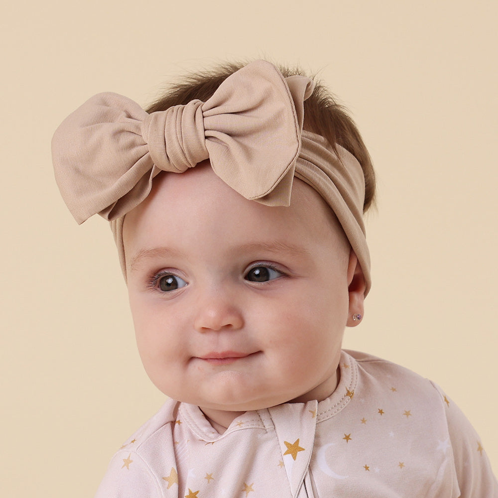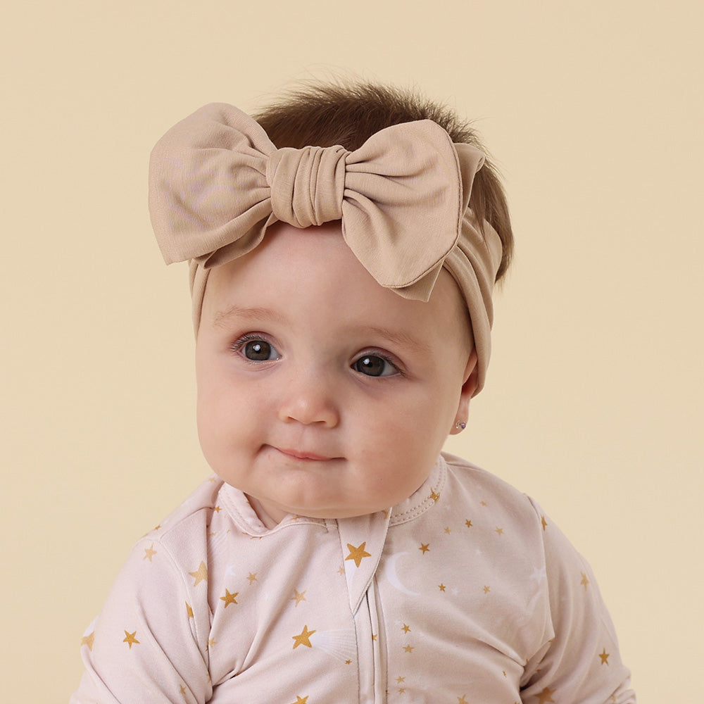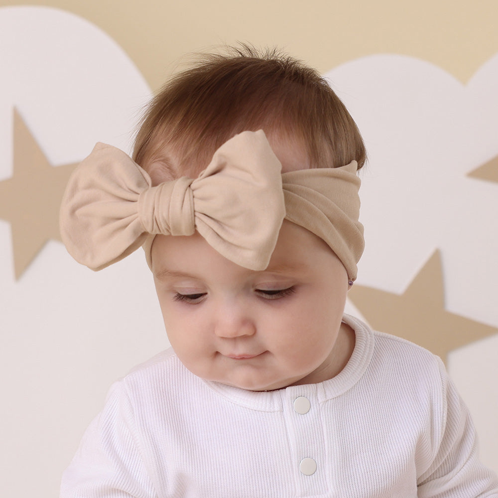 This Pebble oversized bow is soft, stretchy and the perfect way to add cuteness to any outfit for any occasion. Suitable for newborns, babies and toddlers. Made from certified organic cotton jersey.